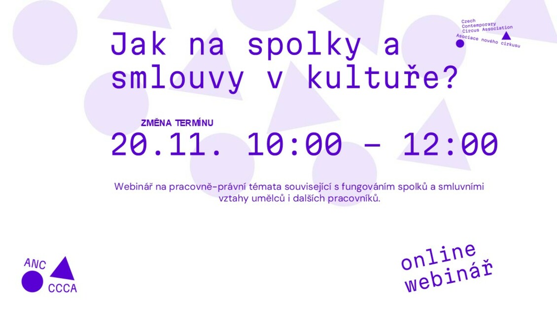 Asociace nového cirkusu vám přináší webinář na pracovně-právní témata související s fungováním spolků a smluvními vztahy umělců i dalších pracovníků.