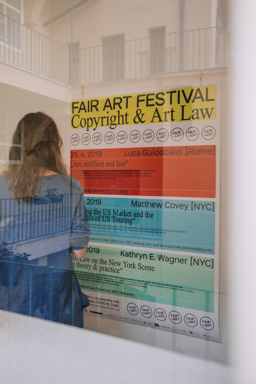 This long-lasting cooperation of CzechMobility.Info and Fair Art gave origin to the international Fair Art Festival, focusing on law in arts, on cultural mobility and art business and market. The festival brought up a series of presentations and workshops with speakers from abroad who dealt with topical issues in the arts, and in 2019, the first edition of the festival hosted Luca Guidobaldi, an expert in intellectual property rights from Rome, who spoke about authorship, artistic freedom and Artificial Intelligence in arts; Matthew Covey, a US lawyer, with his workshop on specific issues connected with entering the US market, and Kathryn E. Wagner who introduced us to the organisation called Volunteer Lawyers for the Arts in New York and how it works.